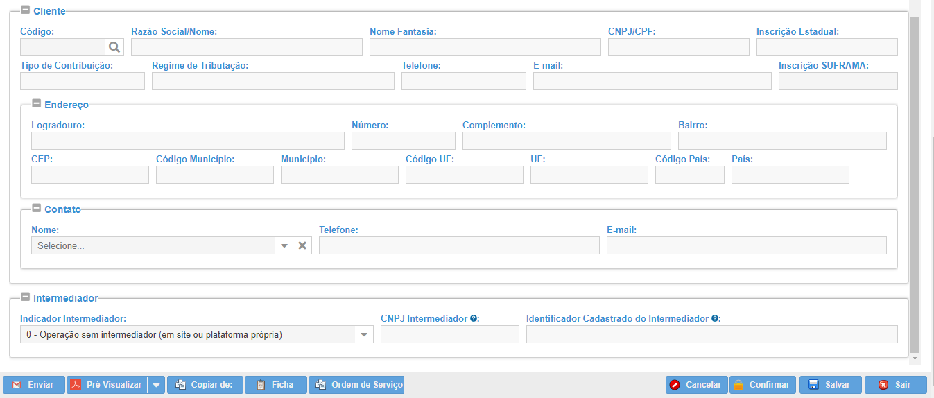 Para cadastrar um pedido de venda, devem ser preenchidos todos os campos conforme mostra a figura abaixo.