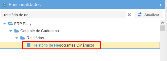 Acesse a tela de "Relatórios de Negociantes (Dinâmico)", conforme mostrado abaixo.