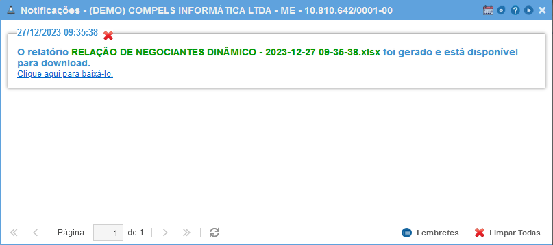 Assim que estiver finalizado, o relatório estará disponível para download na tela de notificações do sistema.