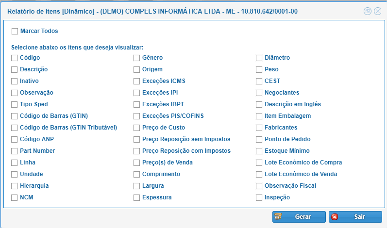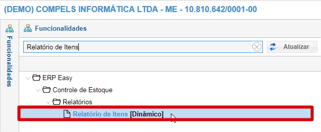 No menu, acesse a tela do Relatório de Itens (Dinâmico) conforme imagem abaixo: