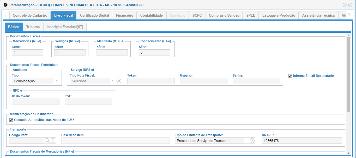 Nesta aba são informadas as configurações referentes ao módulo fiscal.