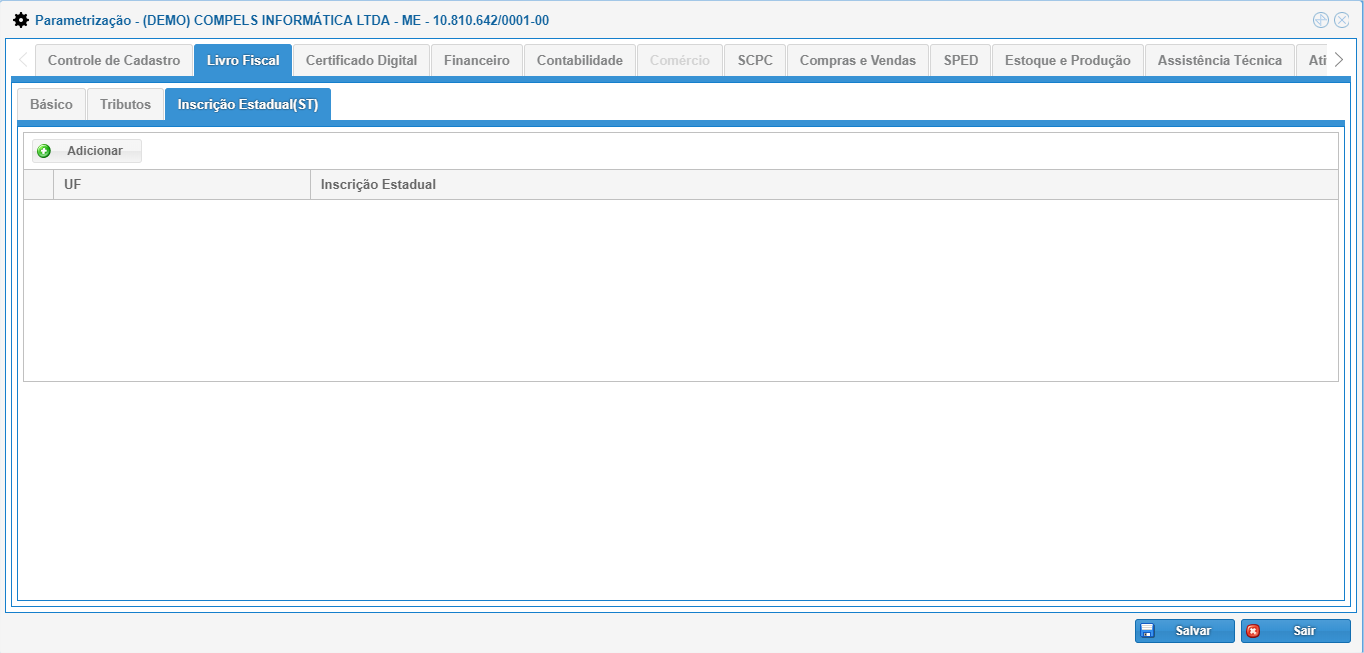 Nesta tabela devem-se informar todas as inscrições estaduais que a empresa possui em outros estados, para que seja informado no DANFE (NÃO COLOCAR A INSCRIÇÃO DO ESTADO DO EMITENTE).