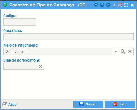- Descrição: Informar a descrição do tipo de cobrança.
