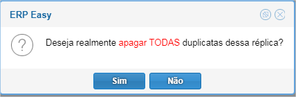 , a mensagem abaixo será exibida e possibilita apagar todas as duplicatas da réplica.