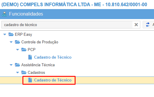 Acessar a rotina "CADASTRO DE TÉCNICO".