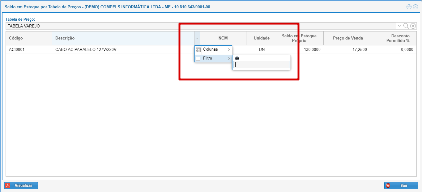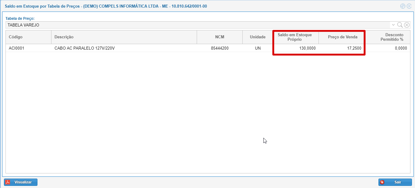 Consulta do Item ACI0001 - CABO AC PARALELO 127/220V - TABELA VAREJO- QTDE 130 - R$17,25