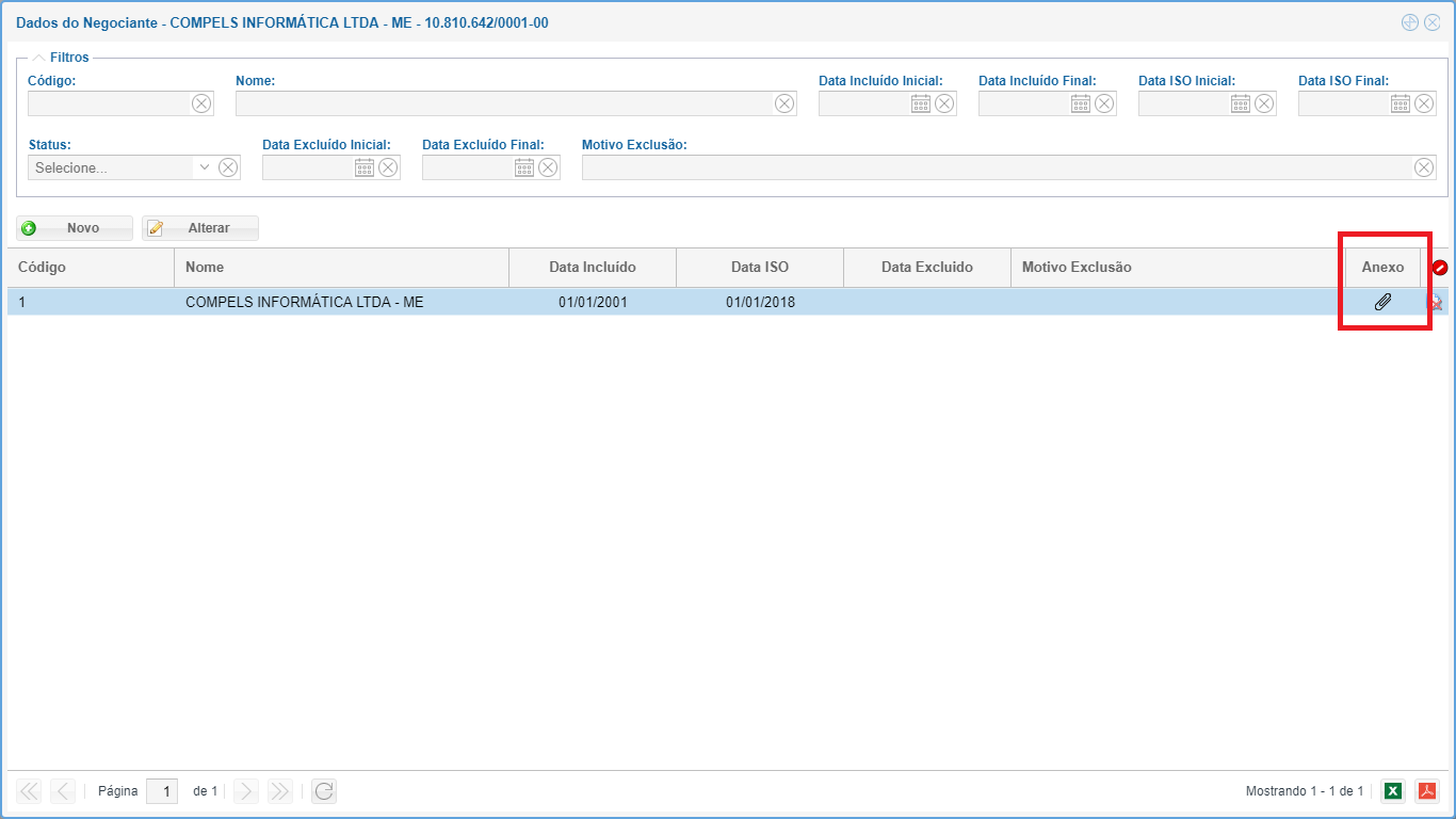 Data Incluído: data em que o fornecedor iniciou as suas atividades de fornecimento com a empresa.