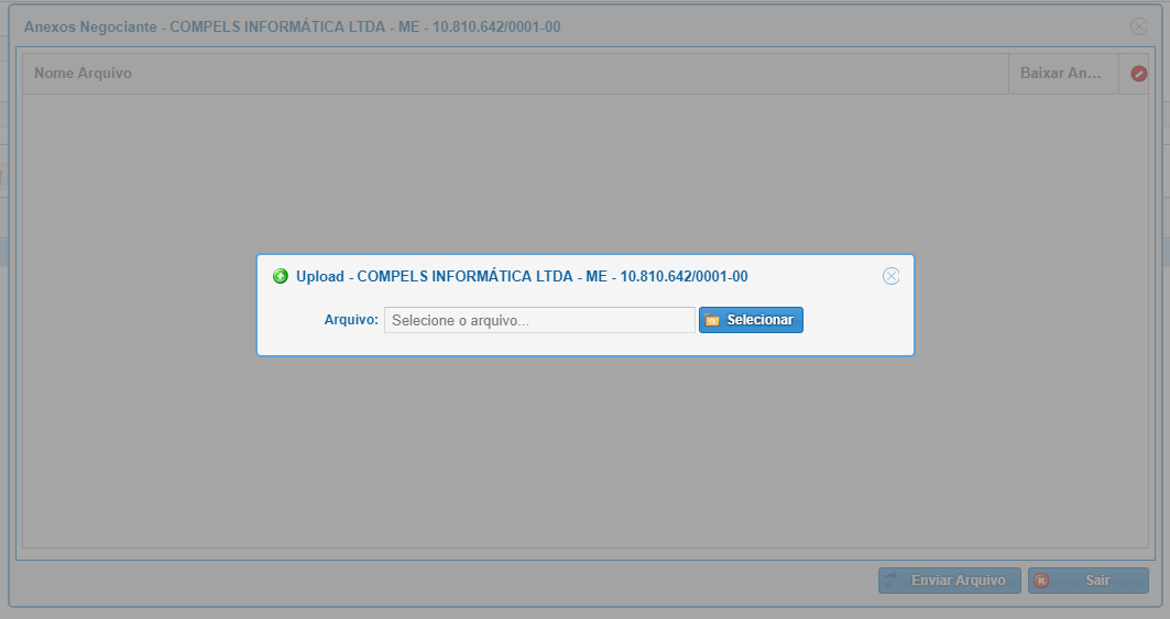 Após salvar estes dados, também é possível anexar documentos aos negociantes, conforme mostrado abaixo: