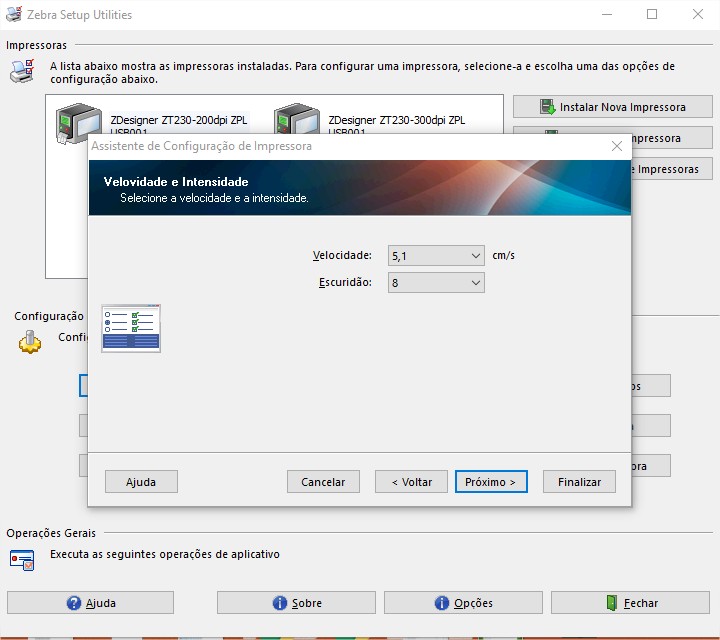 A qualidade de impressão é configurada pelo Zebra Setup Utilities, que também pode ser usado para configurar o tamanho da etiqueta. Neste caso, foi utilizado a configuração abaixo. Entretanto pode ser ajustada de acordo com o layout a ser impresso.