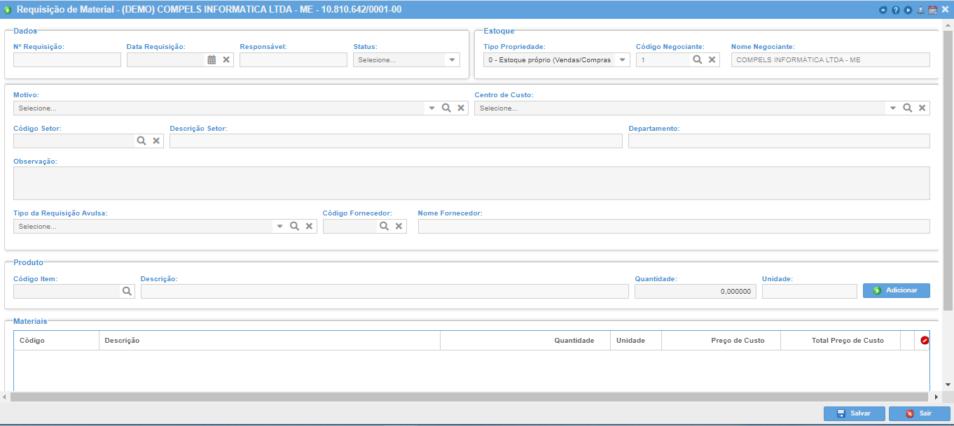 Data Requisição: data em que a requisição foi lançada no sistema, gerada automaticamente.