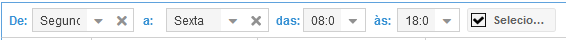 Ao clicar no botão "Novo", será listado uma tabela com os dias da semana, e os intervalos de hora, para que seja possível selecionar conforme a necessidade.