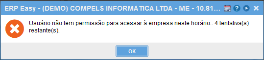 Sempre que um usuário logar fora do horário uma mensagem será exibida.