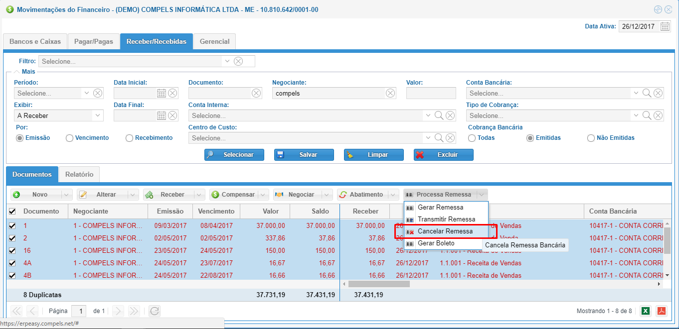 Para o cancelamento da cobrança, em primeiro lugar cancele diretamente no site do banco, em seguida utilize a opção de cancelamento disponibilizada no sistema.