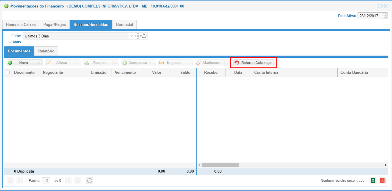 Os movimentos de confirmação de entrada de título não realizam nenhum movimento apenas constam nesta listagem para conferência.