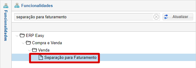Acesse a rotina "Separação para Faturamento".