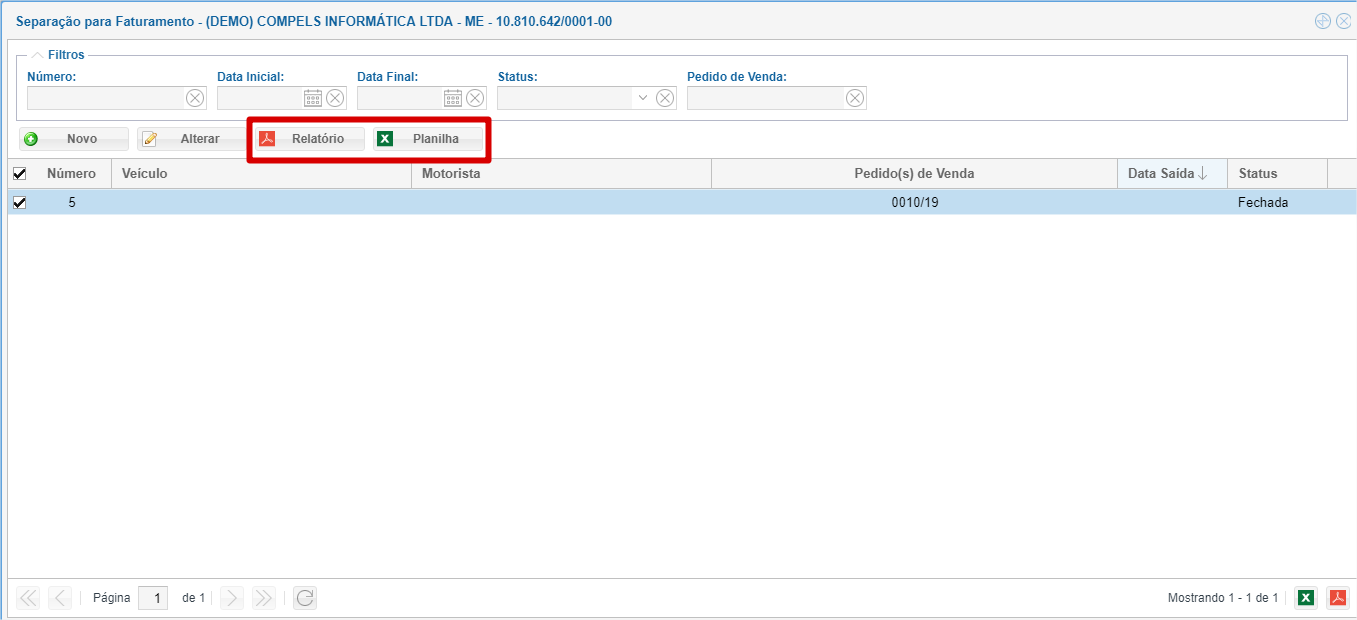 Selecione a separação desejada (é possível selecionar somente uma de cada vez e ela deve estar com o status "Fechada").