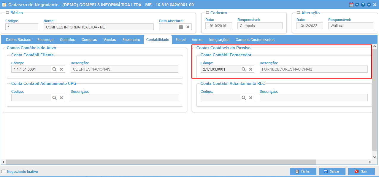 Cadastro do Negociante (Fornecedor)