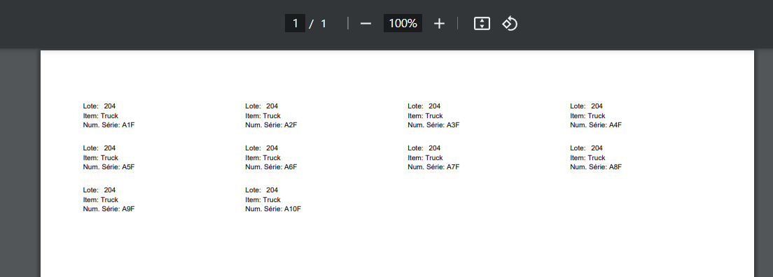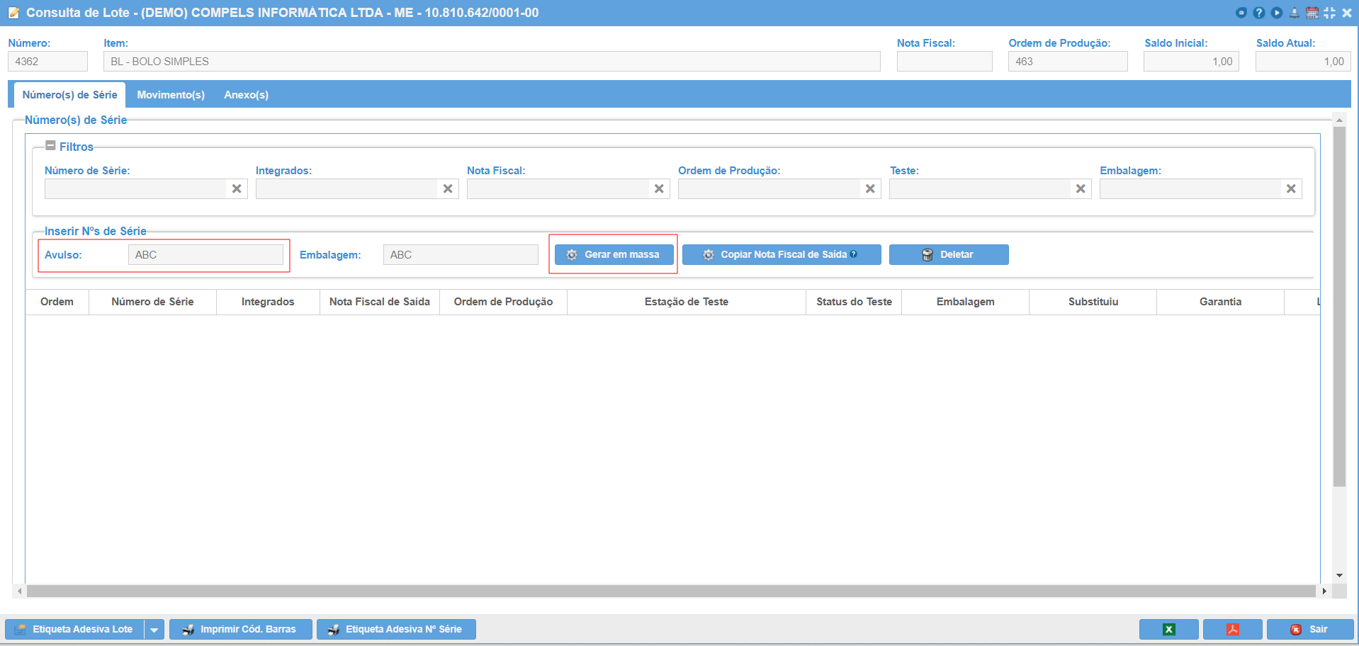 Após gerar os números de série, a tabela abaixo será preenchida.