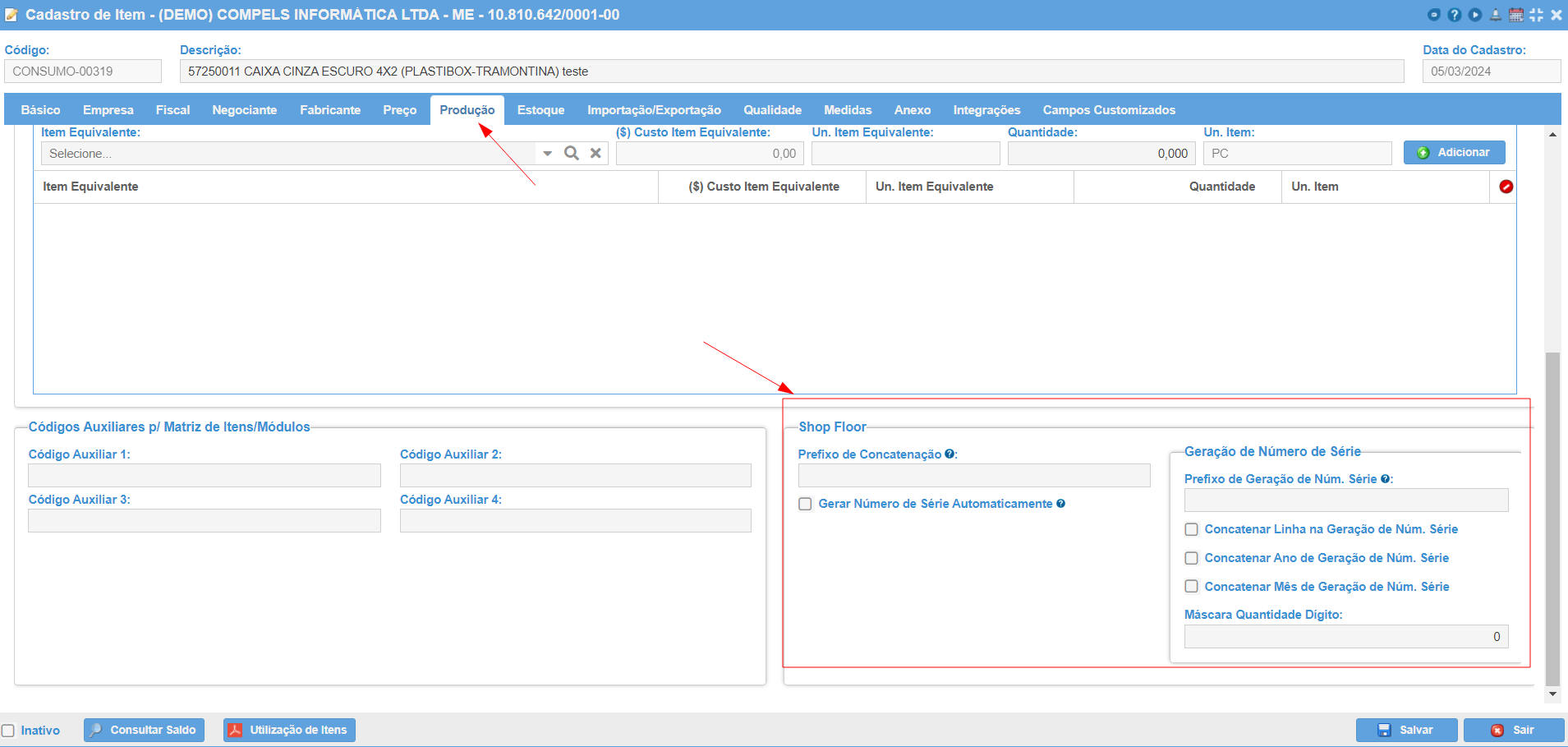 Geração de Número de Série (com ou sem o shopfloor):