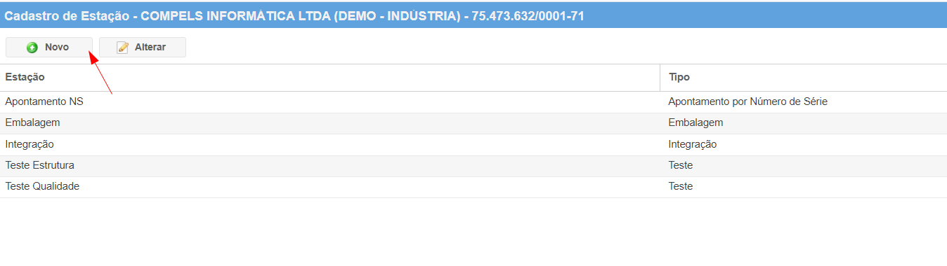 Clique em Novo para cadastrar uma estação ou selecione uma Estação já existente para alterar.