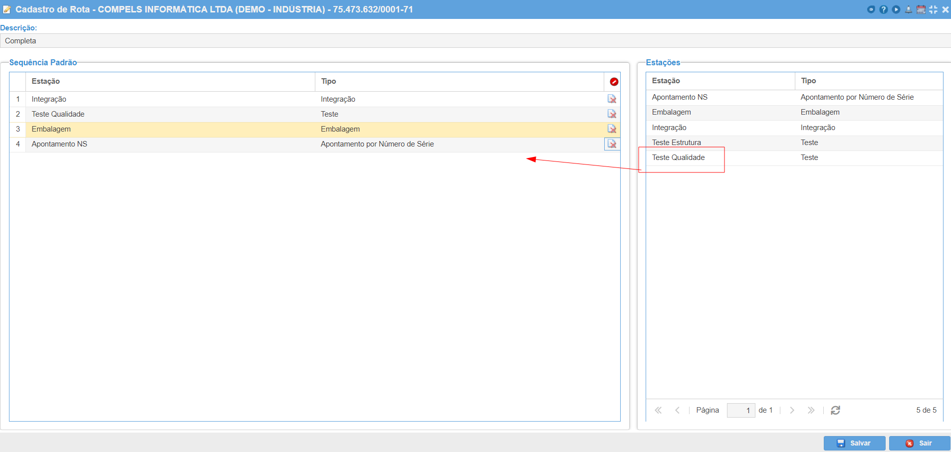 É possível cadastrar várias rotas diferentes a depender da necessidade do item a ser produzido. Cada rota terá as estação que o item vai precisar dentro do shopfloor, por exemplo, Rota com Integração e Testes, Rota com Teste ou Embalagem ou Rota com todas as Estações.