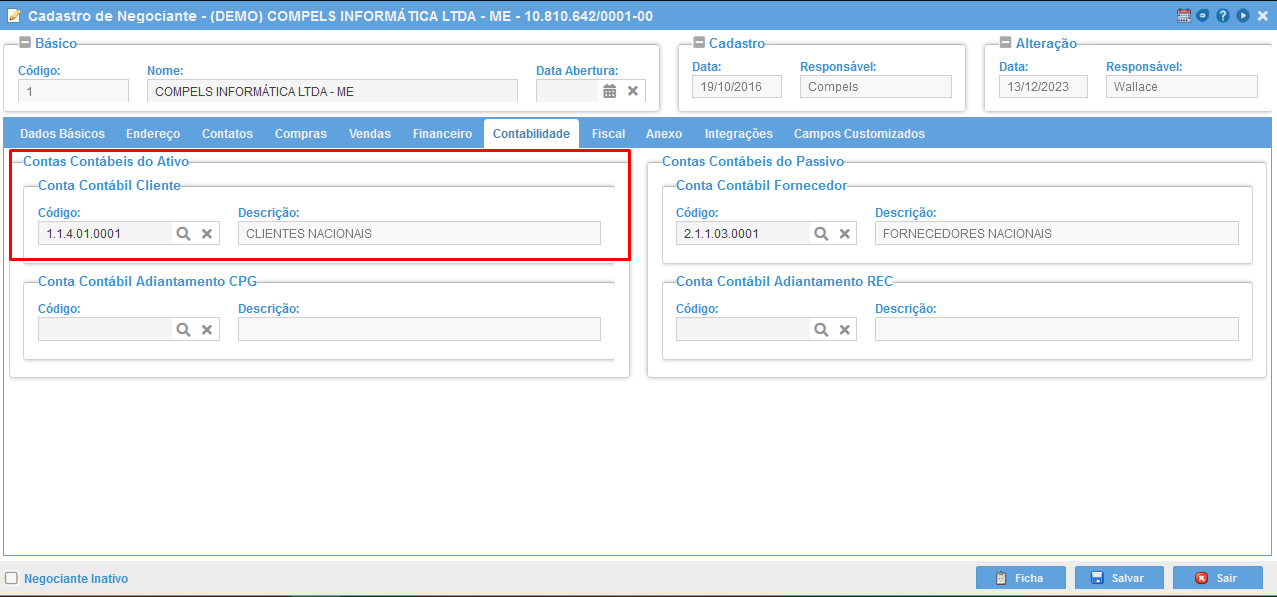 Cadastro do Negociante (Cliente)