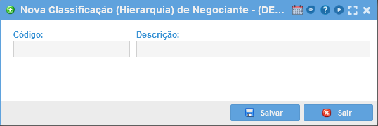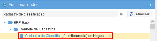 Para acessar a tela de "Cadastro de Classificação (Hierarquia) de Negociante":