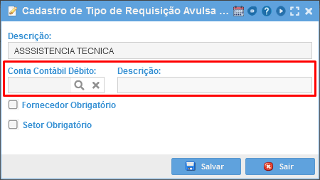 A Requisição avulsa do Estoque é integrada através da seguinte funcionalidade:
