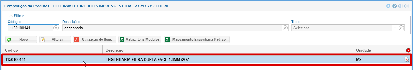 Para o item da linha Engenharia, é necessário cadastrar uma Composição de Produtos.