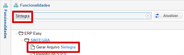 Para gerar o Sintegra, digite "Sintegra" no menu de funcionalidades, conforme imagem abaixo.