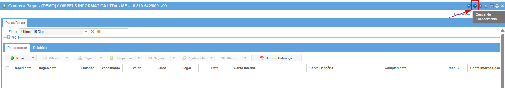 Ou caso já esteja na tela da função desejada, clique no botão no canto superior direito "Central de Atendimento".