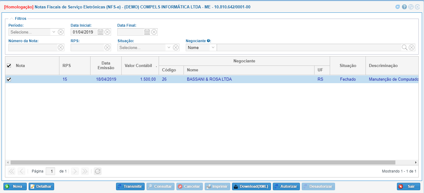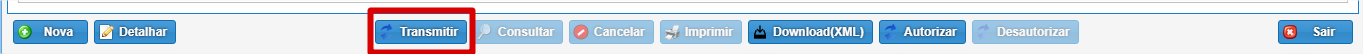 Selecione uma Nota cujo "Status" seja "Fechado" e clique em "Transmitir".