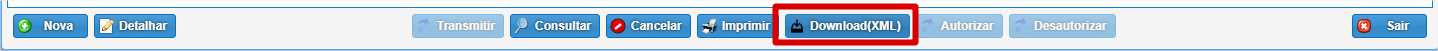 No botão de "Download" é possível baixar o xml da Nota. Selecione a Nota e clique em "Download".