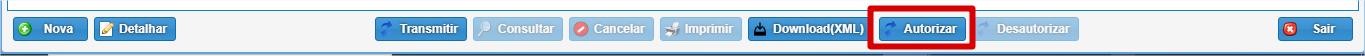 Para Autorizar, selecione a Nota e clique em "Autorizar".