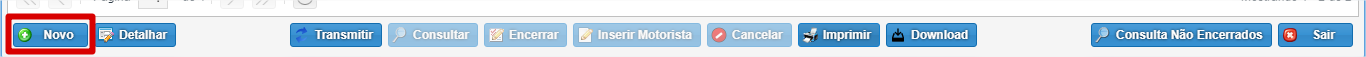 É possível cadastrar novos MDF-e através do Gerenciador. Para isso, clique no botão "Novo". Para mais informações do cadastro de manifesto, Clique aqui.