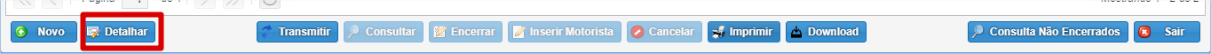 Selecione o MDF-e e clique em "Detalhar" para visualizar o MDF-e e verificar as informações.