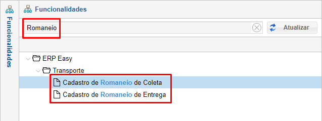 Acesse a função "Cadastro de Romaneio de Coleta / Entrega".