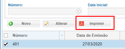 Ainda na tela inicial é possível imprimir um romaneio pela tela inicial, basta selecionar o romaneio e clicar no imprimir.