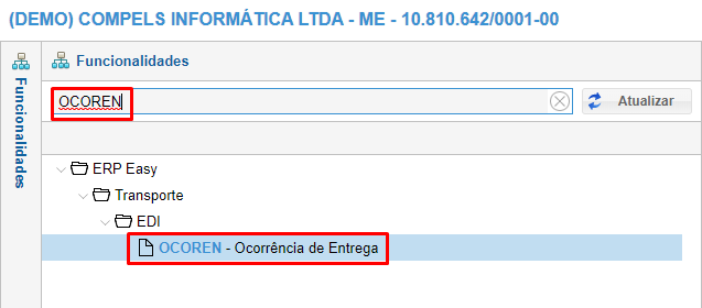 Nesse manual, será tratado o EDI OCOREN. Para acessá-lo, faça conforme a imagem abaixo.