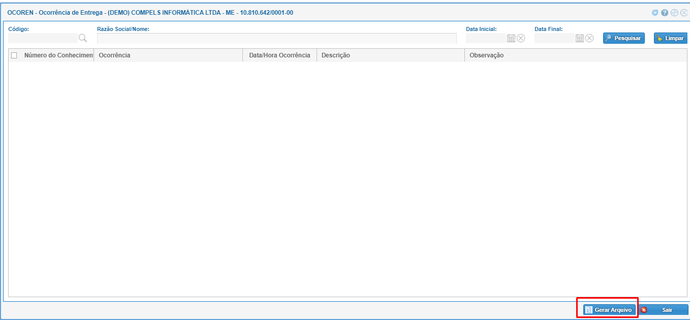 Após isso clique no "Gerar Arquivo" para gerar o arquivo seja gerado.