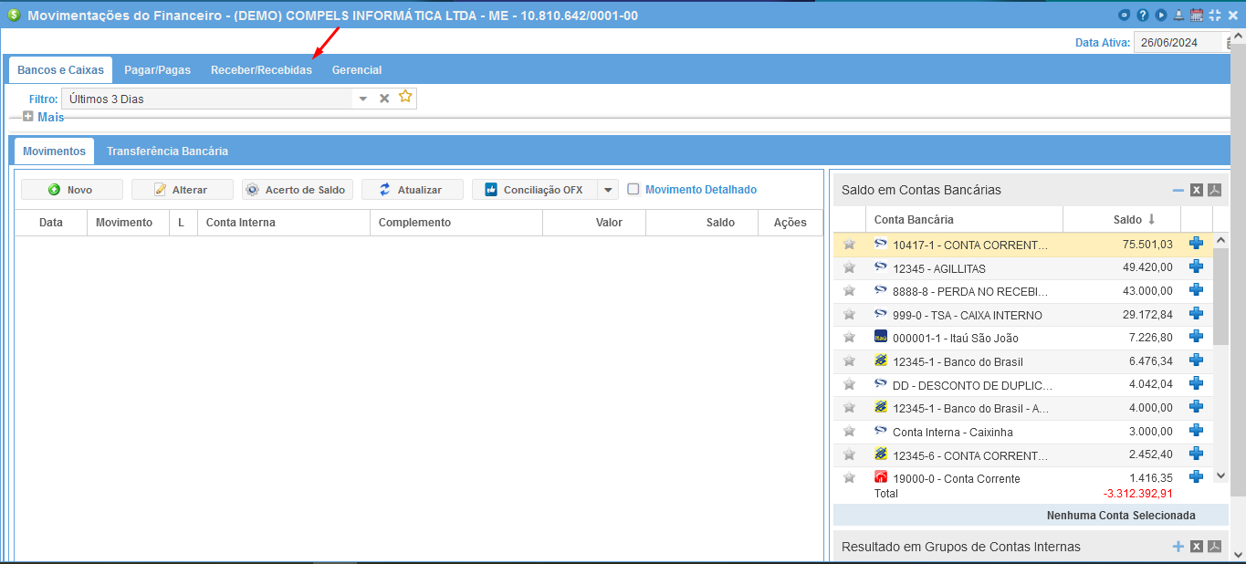 A seguinte página será exibida onde deverá acessar a aba "Receber/Recebidas".