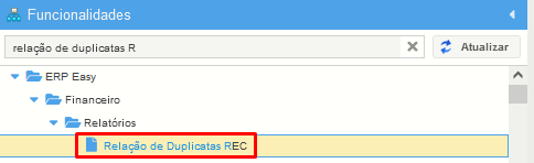 Para gerar o relatório "Relação de Duplicatas REC", acesse: