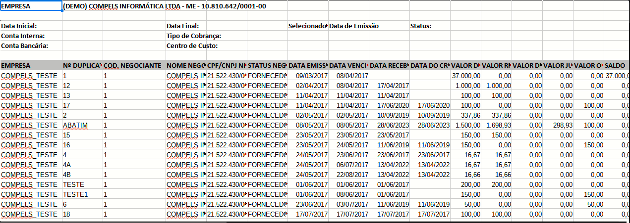 O relatório Relação de duplicatas REC é uma ferramenta que permite visualizar todas as duplicatas a receber e recebidas que foram registradas no sistema.