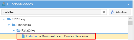 O Relatório de Detalhe de Movimentos em Contas Bancárias exibe as movimentações bancárias realizadas em um determinado período.