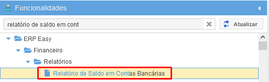 O Relatório de Saldo em Contas Bancárias permite vizualizar o Saldo Inicial, Saldo Final e o total de Crédito e Débito em todas as contas bancárias no período escolhido.