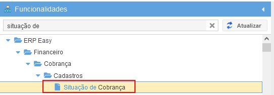 A funcionalidade Situação de Cobrança possibilita o cadastro dos tipos de cobranças que serão feitos em uma abordagem ao cliente.