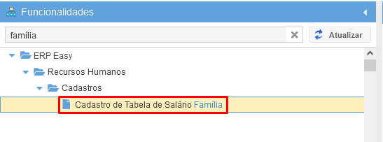 Acesse o cadastro de tabela de salário família: