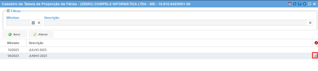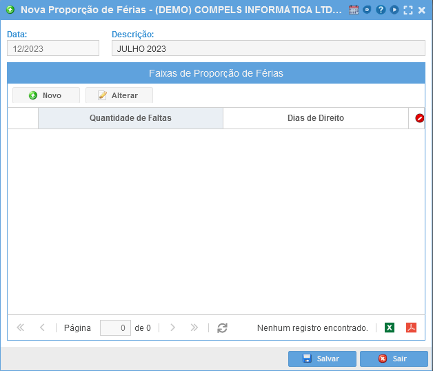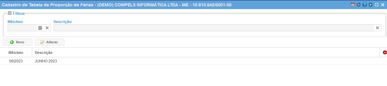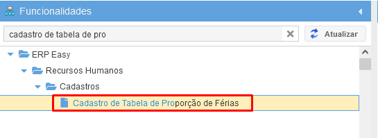 Acesse o cadastro de Tabela de Proporção de Férias: