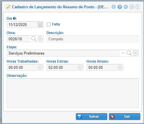 - Falta: marcar em caso de falta do funcionário no dia selecionado;