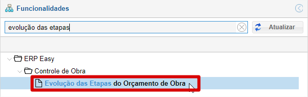 Serão listadas apenas as etapas vinculadas ao usuário no Cadastro de Obra.